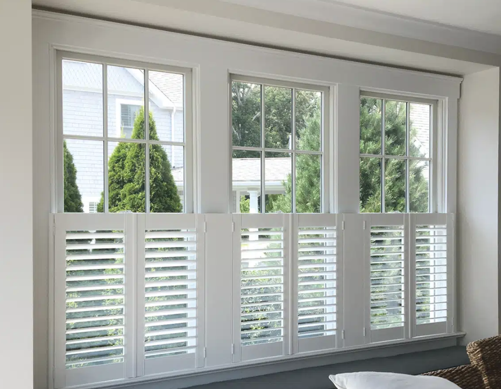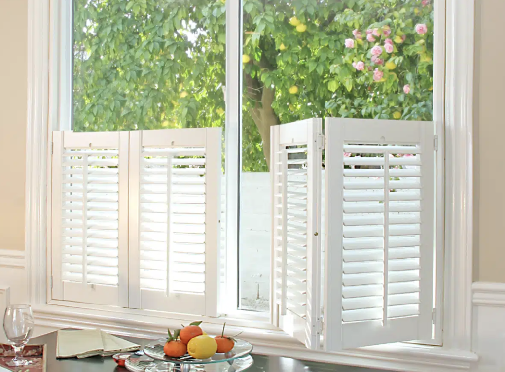 Café shutters are half-height interior shutters that cover the lower portion of your windows. They offer privacy while letting sunlight in through the upper half—ideal for kitchens, dining rooms, and bathrooms.